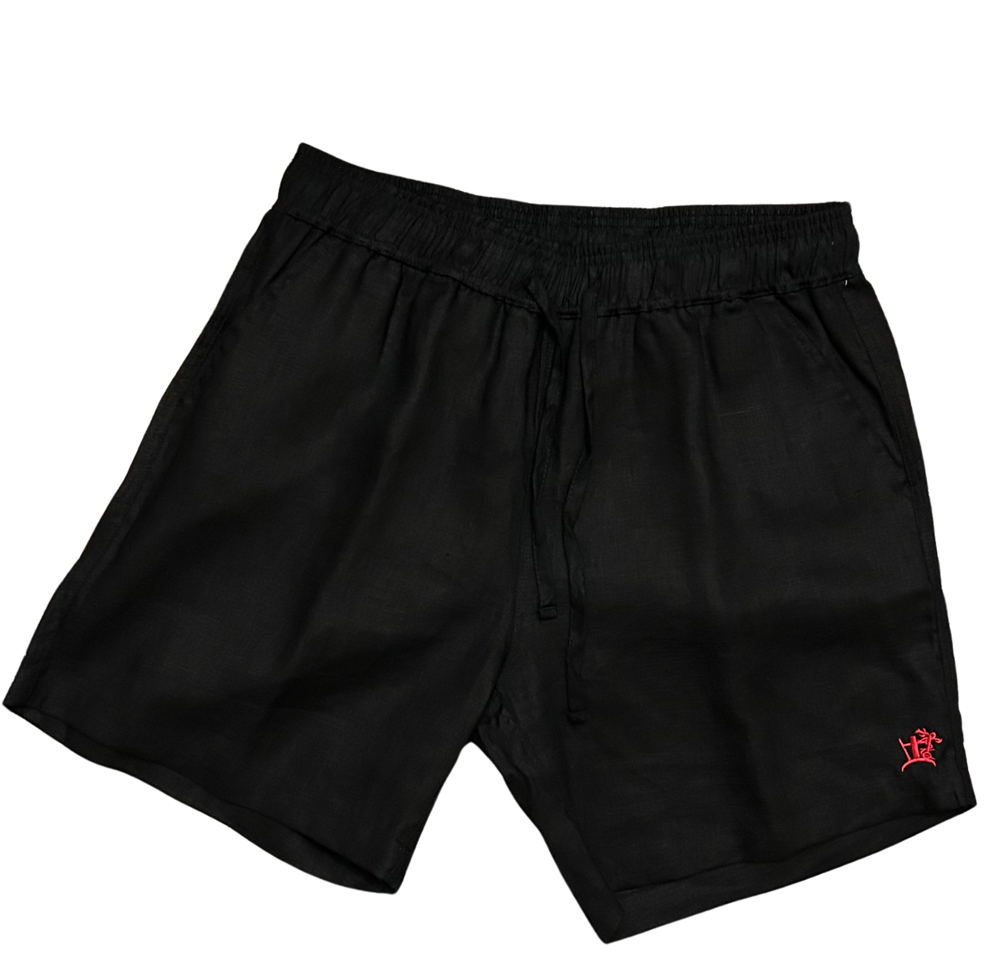 NERIA 100% LINEN SHORT BLACK CRIMSON CRUCIBLE LOGO
